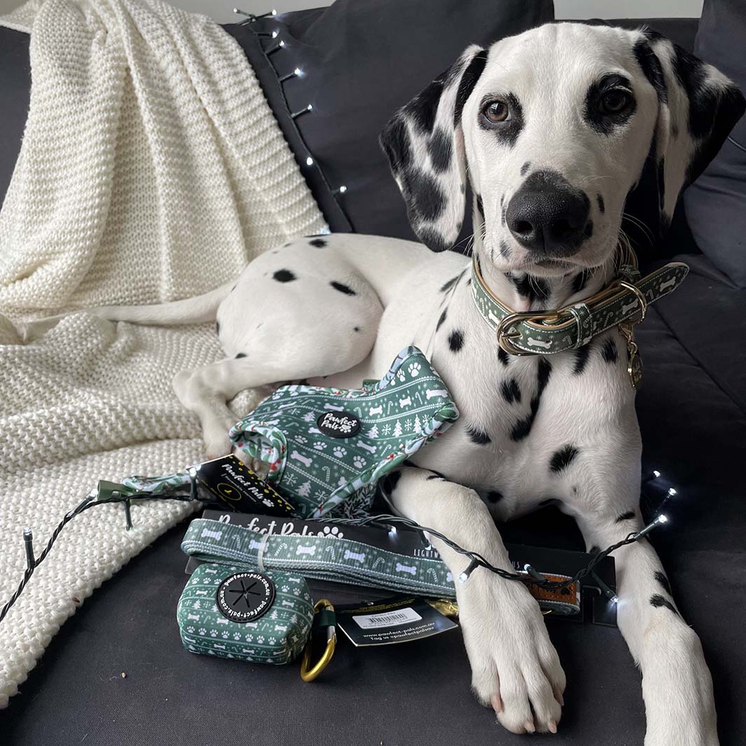 • Deck the Paws - Green Sweater vegan leather dog collar.
