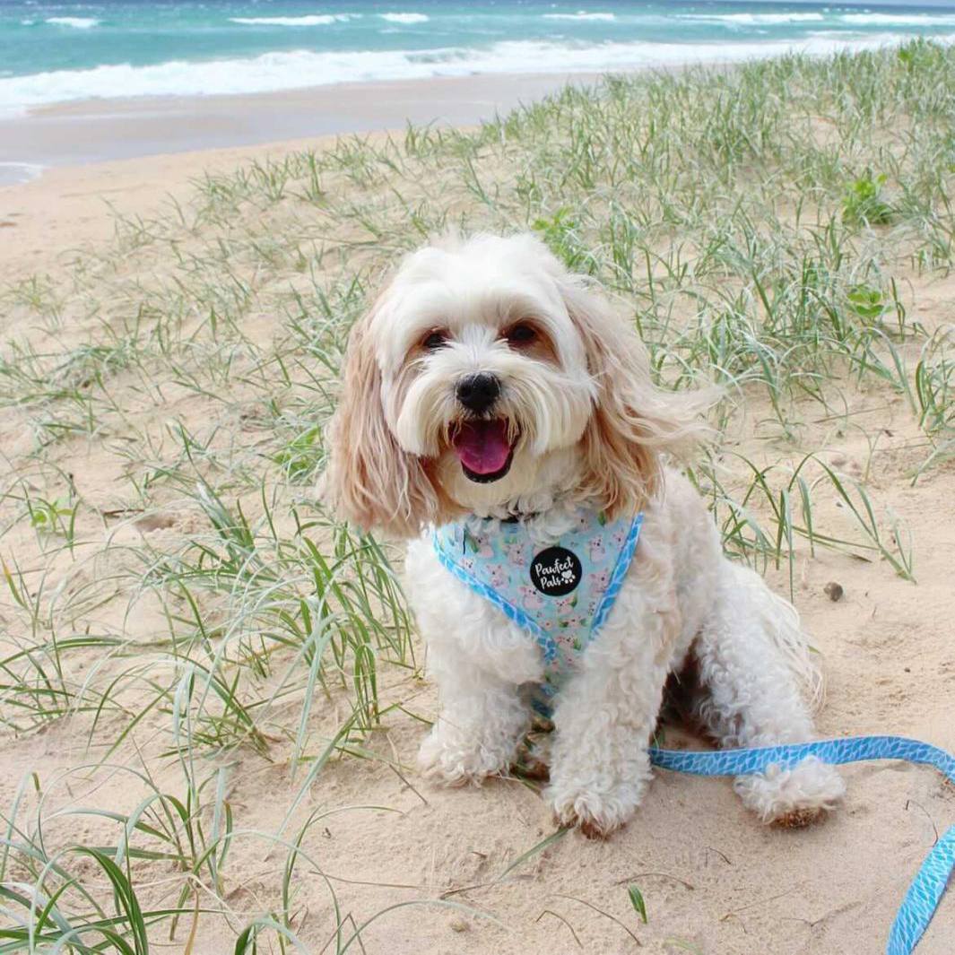• AmbassaDOG Bailey in the Koalified Cuddler - Leaves lead and reversible harness.
