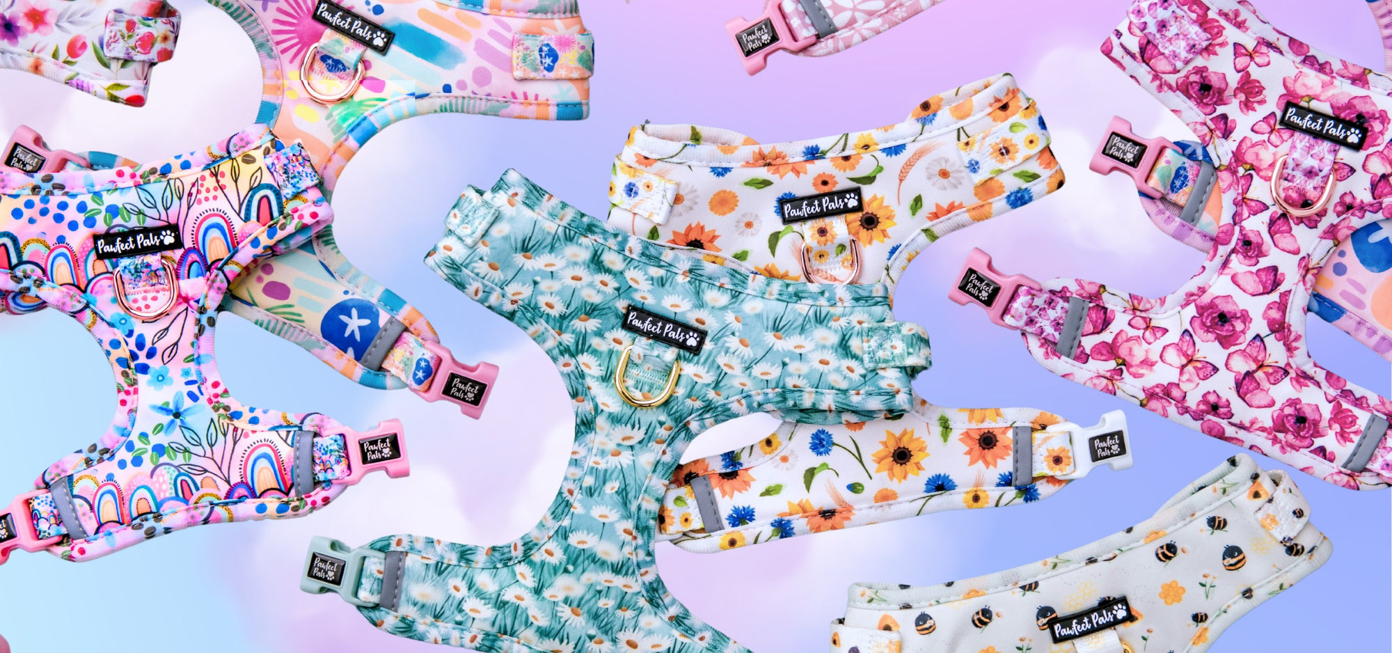 Suitable for puppies, big dogs, and every fur baby in between, our adjustable dog harnesses are available in a range of cute and colourful designs to match the personality of every pup.