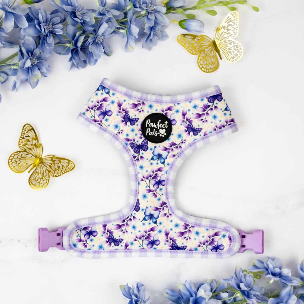 • Purple Gingham side of the Social Butterfly reversible harness.