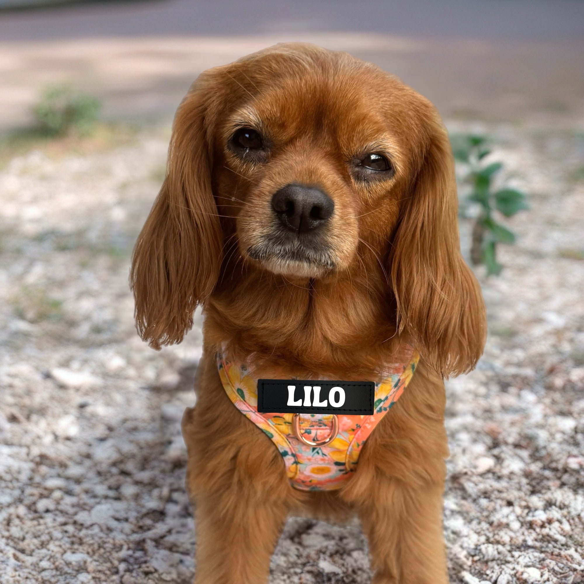 • A personalised Adjustable Harness, strong matching lead & waste bag holder.